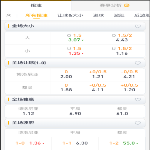 在这里,习惯用 1 X 2 来代表球队的赢平输,这也就是欧洲赔率的三项赛果。因为亚盘的加入,所以最简单的内容反而不那么容易被找到了。但只要用心寻找,你会发现所有你想到或想不到的投注内容,在DB旗舰 都有。